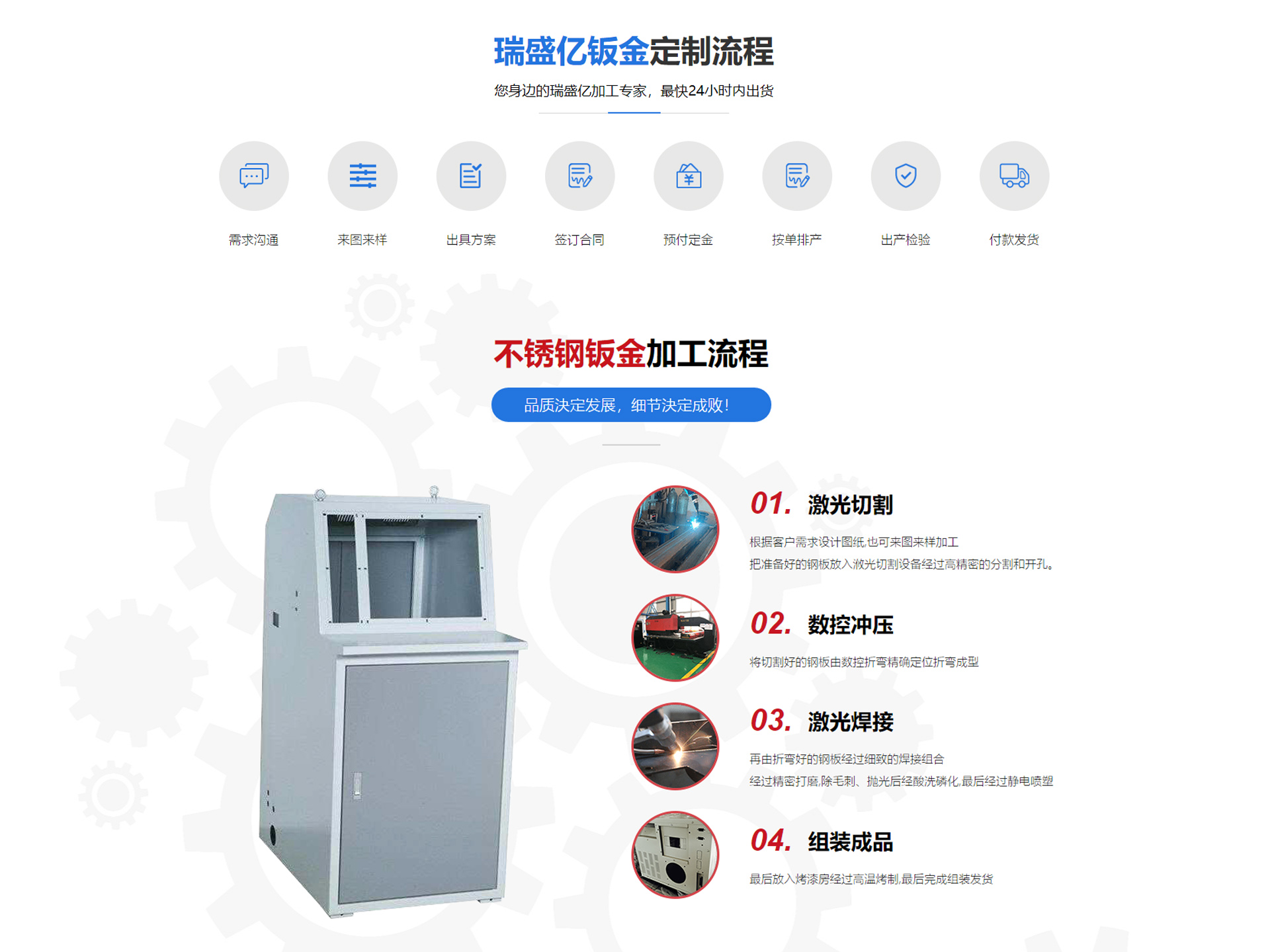 瑞盛億金屬制品(廈門)有限公司是由原廈門市鼎利達(dá)工貿(mào)有限公司(行業(yè)20年經(jīng)驗(yàn))基礎(chǔ)上(管理團(tuán)隊(duì),骨干員工均不變)新成立的一家專門從事精密鈑金生產(chǎn)的企業(yè),公司主營:鈑金、機(jī)柜箱、設(shè)備機(jī)架、不銹鋼制品等。本公司將以誠信、專注、品質(zhì)及時(shí)為客戶創(chuàng)造更具價(jià)值的產(chǎn)品,為客戶創(chuàng)造價(jià)值,贏得客戶的信任和支持,讓客戶和員工滿意是本公司可持續(xù)發(fā)展的根本保證,我們將秉承這一理念貫穿整個(gè)生產(chǎn)、經(jīng)營活動(dòng)中,保持與客戶長期、持續(xù)的合作。